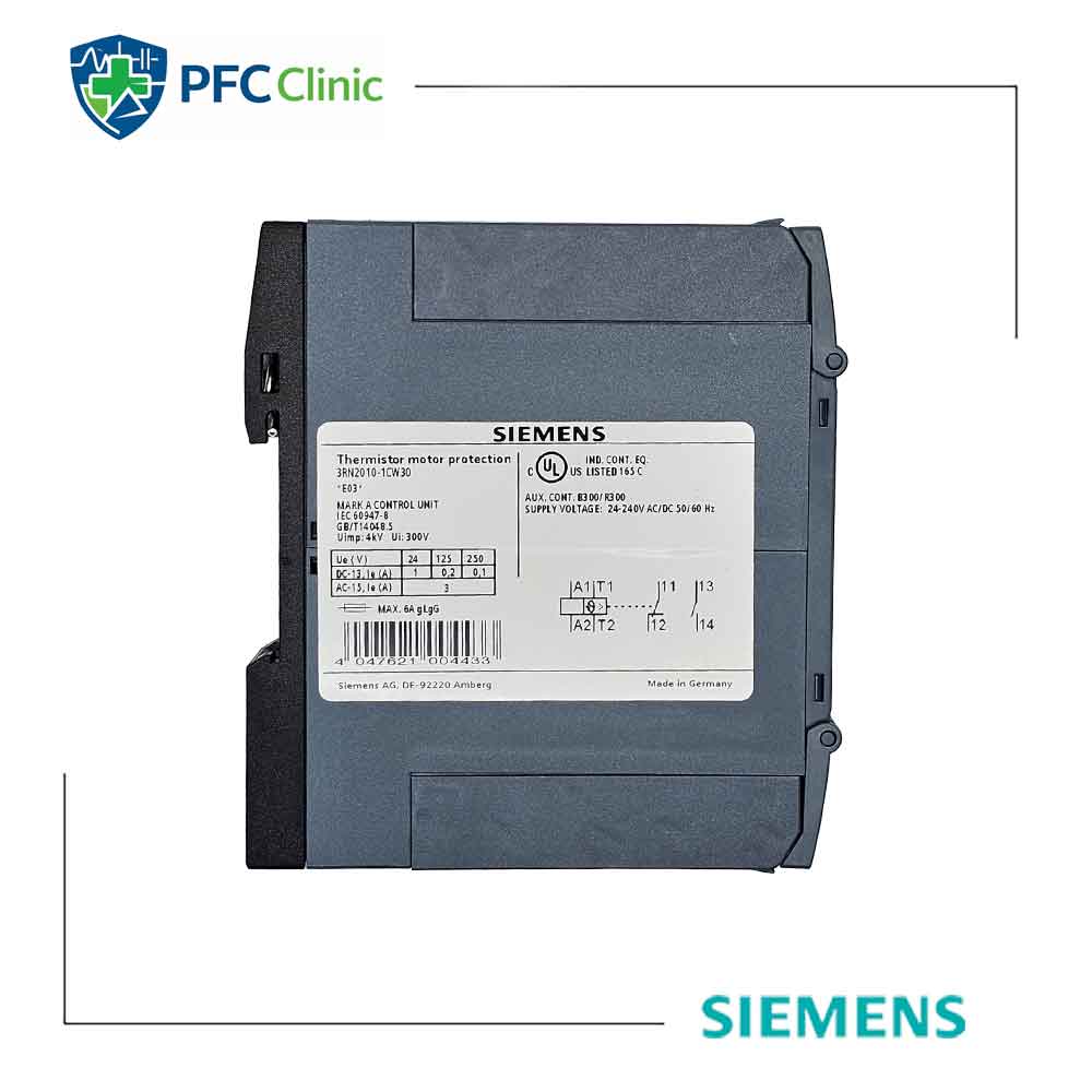 رله ترمیستور Siemens 3RN2010‑۱CW30 برای حفاظت حرارتی موتورهای الکتریکی طراحی شده و با استفاده از سنسورهای PTC، دمای سیمپیچ موتور را بهصورت غیرمستقیم کنترل میکند.